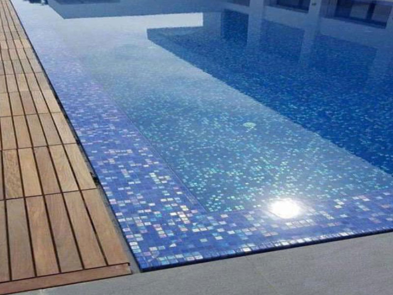 Gạch Mosaic thủy tinh được làm từ các mảnh thủy tinh ghép lại có khả năng chống ẩm, chống thấm nước cao, phù hợp cho các môi trường hồ bơi, phòng tắm. Gạch với nhiều gam màu được làm từ chất liệu thủy tinh khi được ốp lát hồ bơi có khả năng phản quang đẹp mắt.