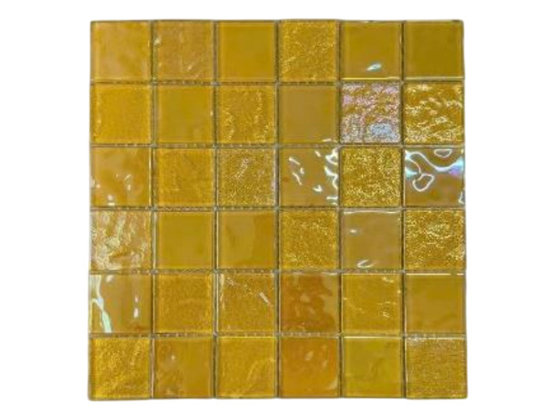 Gạch Mosaic thủy tinh được làm từ các mảnh thủy tinh ghép lại có khả năng chống ẩm, chống thấm nước cao, phù hợp cho các môi trường hồ bơi, phòng tắm. Gạch với nhiều gam màu được làm từ chất liệu thủy tinh khi được ốp lát hồ bơi có khả năng phản quang đẹp mắt.
