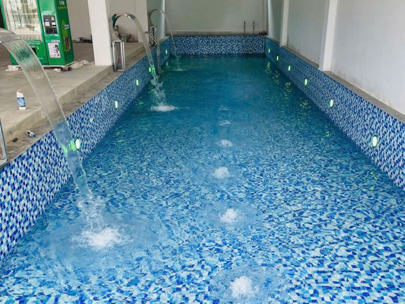 Gạch mosaic thuỷ tinh được ứng dụng rộng rãi trong các không gian: bể bơi, bể sục, phòng xông hơi, phòng tắm, trang trí.